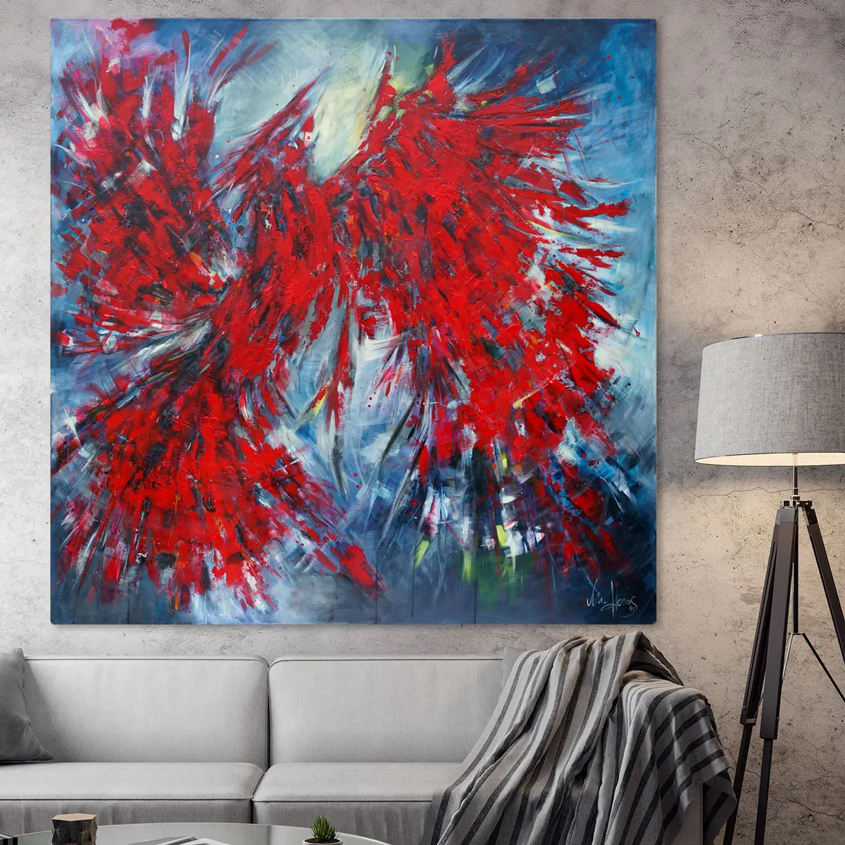 Format: 150 x 150 x 4 cm Technik: Acryl auf Leinwand Keilrahmen Entstehungsjahr: 2025 WerkNo: 202511 Serie: Phoenix / Feuervogel Original : käuflich /
